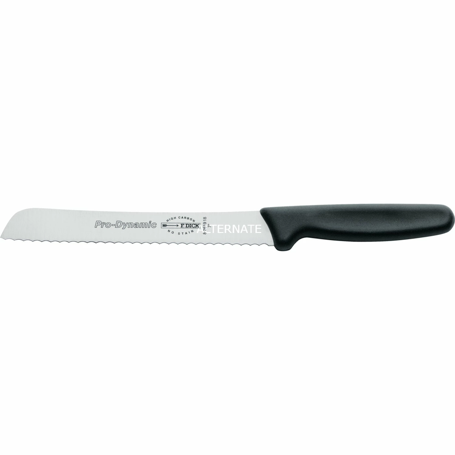 Das ProDynamic Brotmesser 82619182 ist ein spezielles Messer mit zackigem Wellenschliff für alle harten und weichen Brotsorten, aber auch Obst wie Melonen wird mit einem sauberen Schnitt in gleichmäßige Scheiben geschnitten. Die spitzen Wellen des leichten ProDynamic Brotmessers eignen sich auch ideal zum Schneiden von Krusten und Torten. Die Messer der Serie ProDynamic finden in der Gastronomie, in Großküchen und im Thekenbereich ihren Einsatz. Sie zeichnen sich durch ein geringes Gewicht aus und ermöglichen ein längeres ermüdungsfreies Arbeiten. Der ergonomisch geformte Vollkunststoffgriff und die Qualitätsklinge aus Edelstahl ergeben ein modernes Messer in klarem Design.