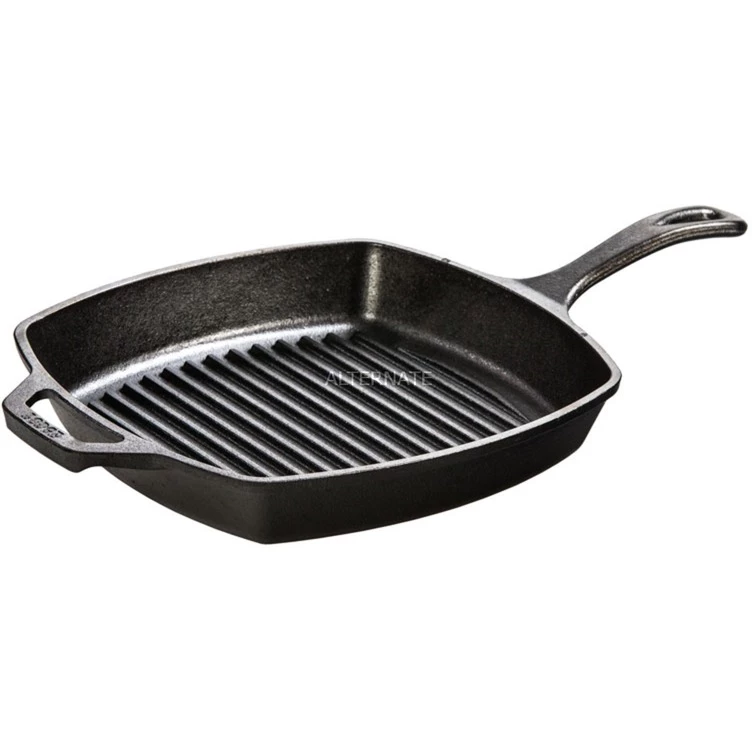 Pfannen Lodge Grillpfanne L8SGP3 Eckig, Mit Stiel Und Griff (schwarz, 26,5cm)