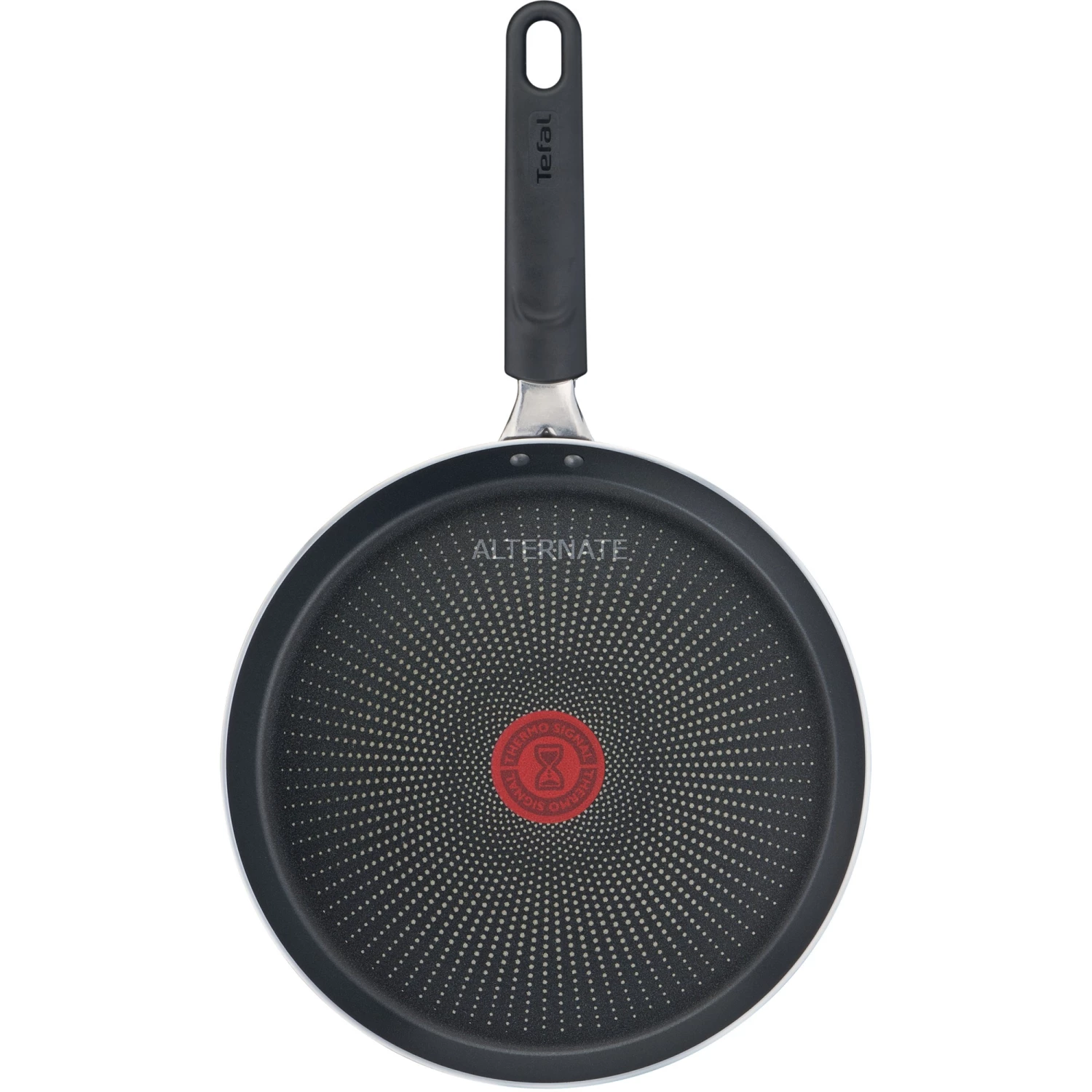 Die äußerst langlebige und widerstandsfähige Crêpepfanne Resist von Tefal ist sogar gegen die hohen Flammen eines Gasherds gewappnet und besitzt dank FlameProtect Technologie eine besonders kratz- und fleckenresistente Oberfläche. Die aus Aluminium gefertigte flache Crêpepfanne mit TITANIUM PRO Antihaft-Versiegelung lässt sich mühelos reinigen und sorgt für außergewöhnliche geschmackliche Qualität und Konsistenz. Dank der breiten und speziellen Form gelingen perfekte luftige, goldbraun gebackene Pfannkuchen. Gleichzeitig kann man diese Pfanne als Crêpepfanne für authentische süße oder herzhafte französische Crêpes verwenden. Außerdem verfügt sie mit dem THERMO-SPOT über einen in die Pfanne integrierten Temperaturanzeiger. Er zeigt an, wann die Pfanne die optimale Brattemperatur erreicht hat. Der ergonomische Thermokunststoffgriff macht die Crêpepfanne Resist backofengeeignet. Die Pfanne eignet sich für fast alle Herdarten, außer für Induktion.