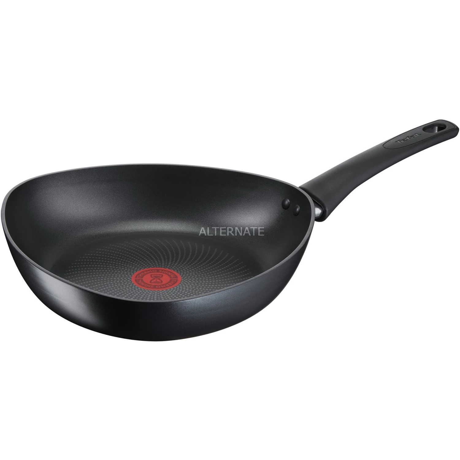 Die Start’Easy 3-in-1 Pfanne von Tefal lässt sich als Wok-Pfanne, Bratpfanne oder Stielkasserolle verwenden. Das durch die tiefe, dreieckige Form um 30% größere Volumen sorgt für mehr Vielseitigkeit und ermöglicht die Zubereitung großer Portionen. Die aus Aluminium gefertigte Pfanne mit hochwertiger und widerstandsfähiger TITANIUM Antihaft-Versiegelung lässt sich mühelos reinigen und sorgt für außergewöhnliche geschmackliche Qualität und Konsistenz. Die Speisen lassen sich perfekt anbraten und ohne zusätzliches Öl garen. Außerdem verfügt sie mit dem THERMO-SPOT über einen in die Pfanne integrierten Temperaturanzeiger. Er zeigt an, wann die Pfanne die optimale Brattemperatur erreicht hat. Der ergonomisch geformte Thermokunststoffgriff mit Daumenauflage macht die Start’Easy Dreiecks-Pfanne backofengeeignet bis 175°C. Die Pfanne eignet sich für alle Herdarten, auch für Induktion.