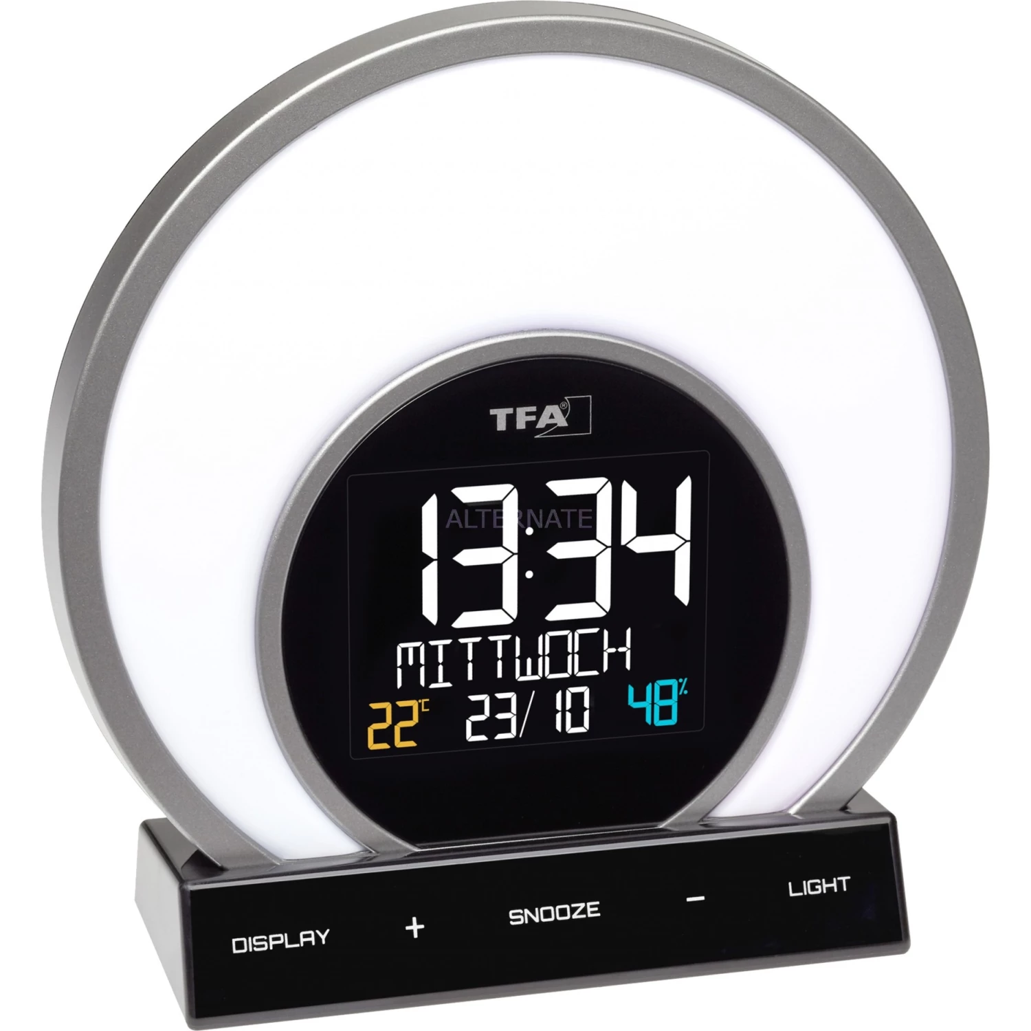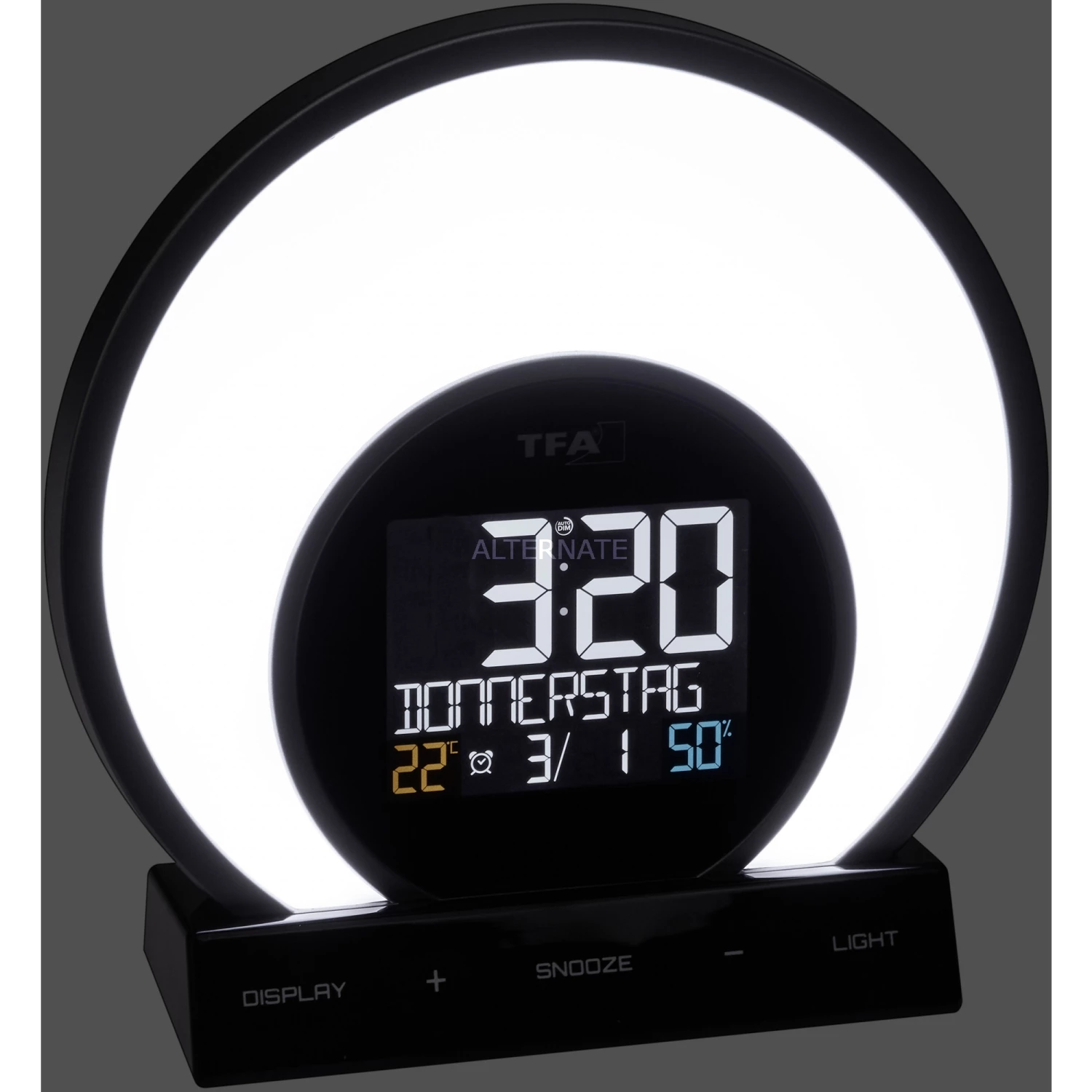 TFA Lichtwecker Mit Farbwechsel-Stimmungslicht Und Raumklima SOLUNA (schwarz/silber)